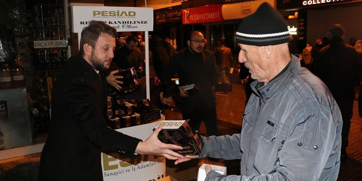 PESİAD ve Genç PESİAD olarak Regaip Kandili hasebiyle, yatsı namazı çıkışında, Pendik Çarşı Camii’nde vatandaşlarımızın kandilini tebrik ederek kandil simidi dağıttık.